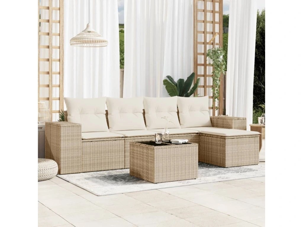 6dílná zahradní sedací souprava s poduškami béžová polyratan 3254835