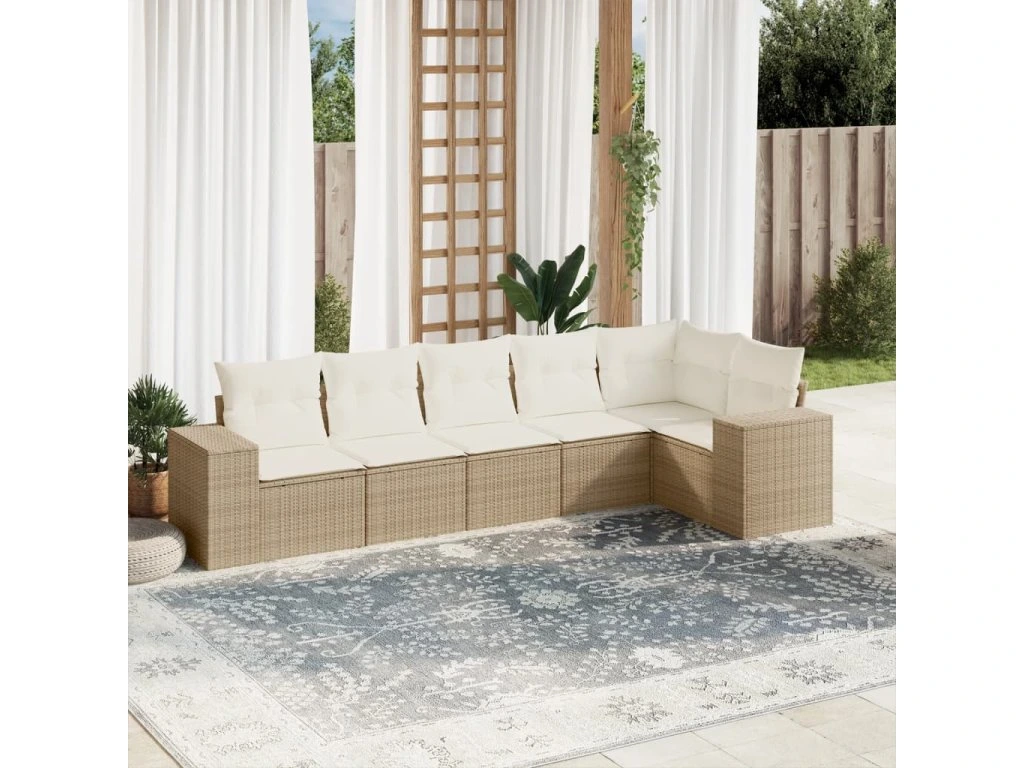 6dílná zahradní sedací souprava s poduškami béžová polyratan 3254925