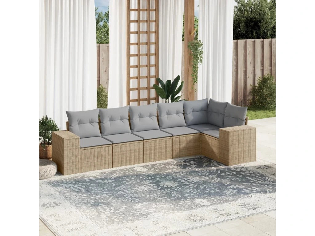 6dílná zahradní sedací souprava s poduškami béžová polyratan 3254926