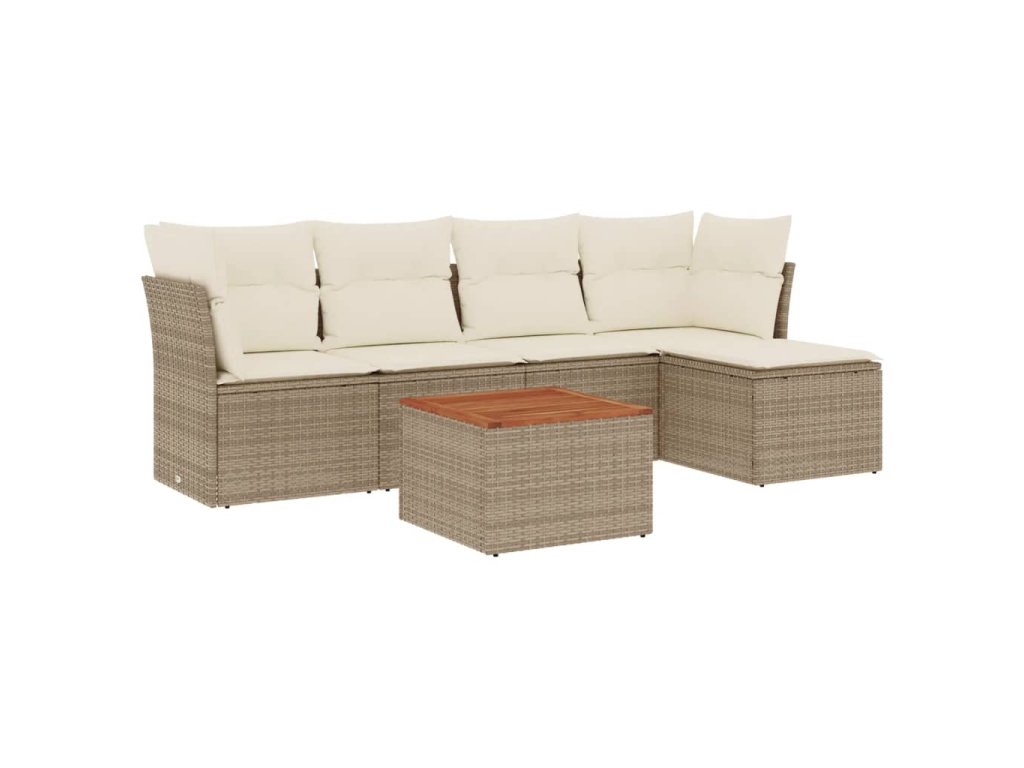 6dílná zahradní sedací souprava s poduškami béžová polyratan 3255946