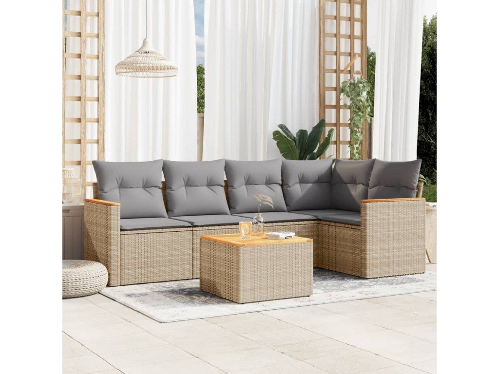6dílná zahradní sedací souprava s poduškami béžová polyratan 3258356