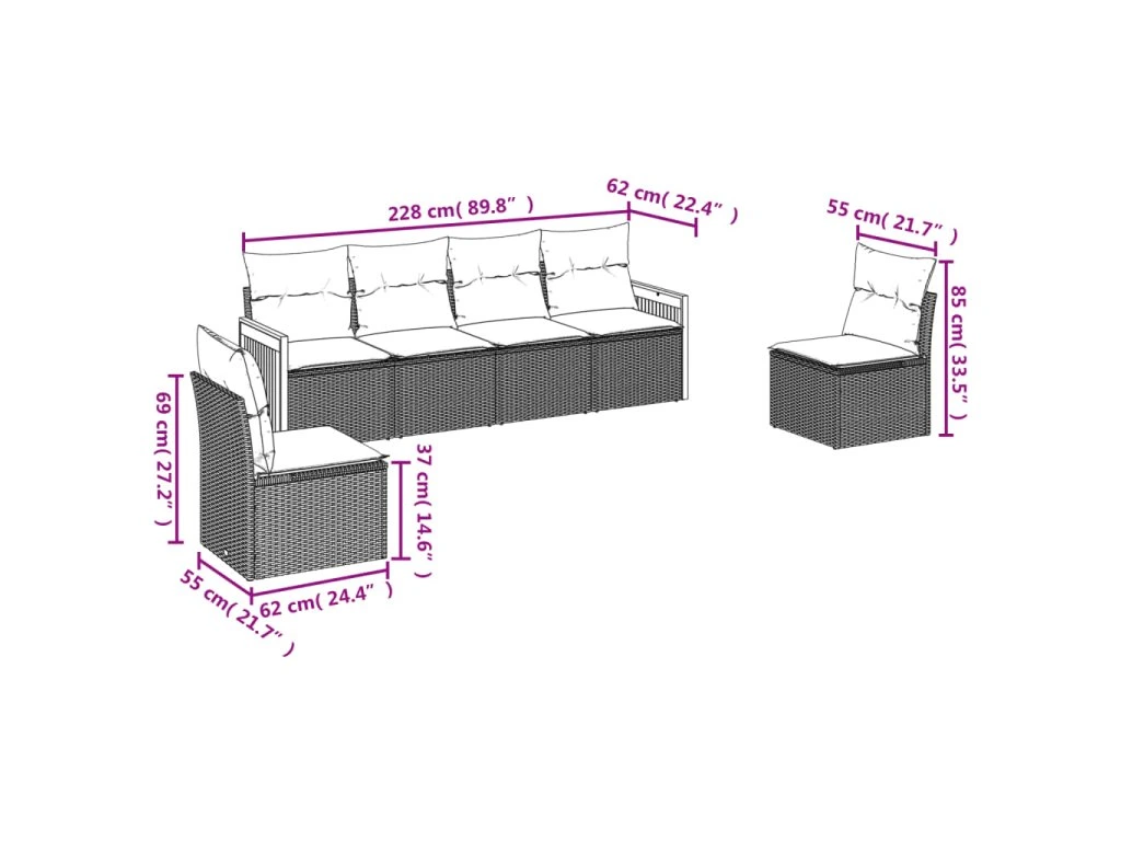 Tato zahradní sedací souprava je dokonalým doplňkem vaší zahrady, terasy nebo dvorku a poskytne vám pohodlné a příjemné místo, kde si můžete povídat s rodinou a přáteli nebo jen tak odpočívat a užívat si pobyt venku.