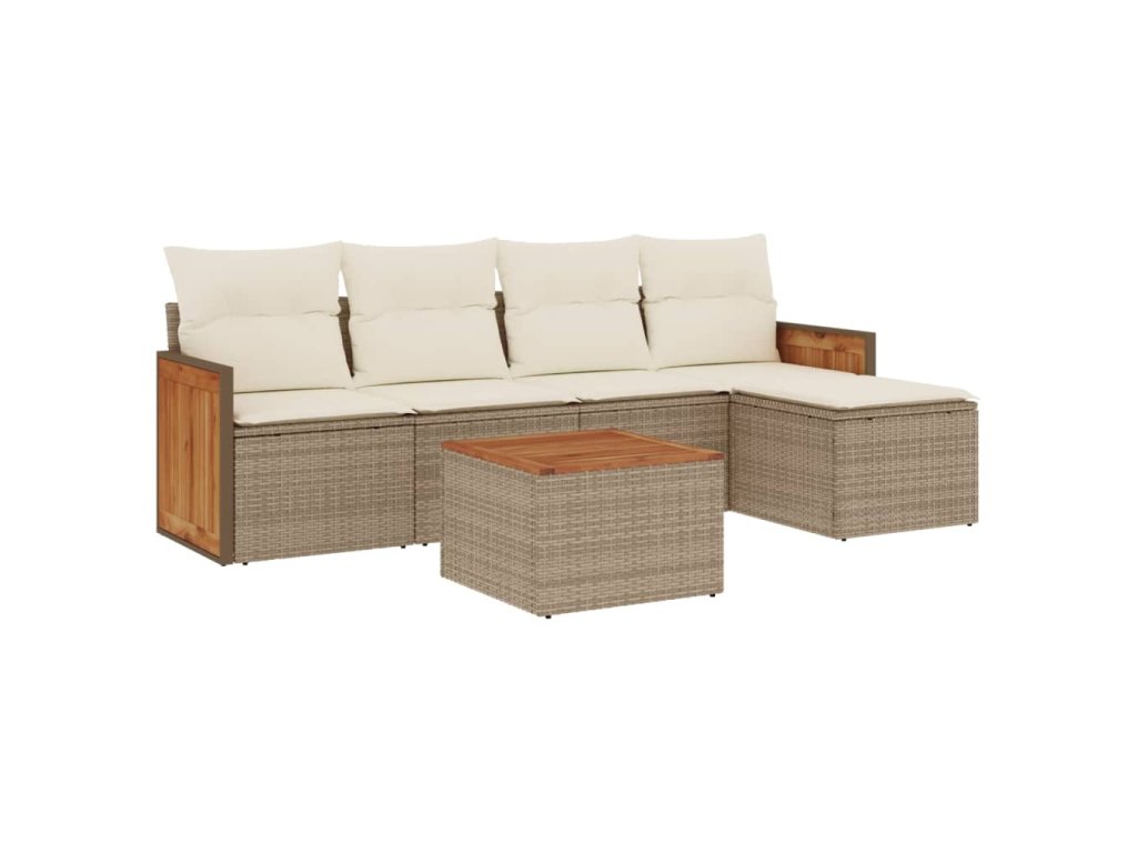 6dílná zahradní sedací souprava s poduškami béžová polyratan 3260007