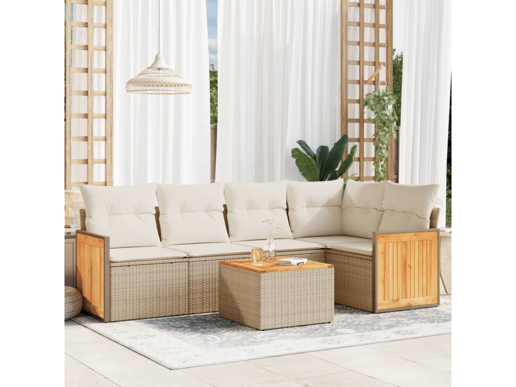 6dílná zahradní sedací souprava s poduškami béžová polyratan 3260035