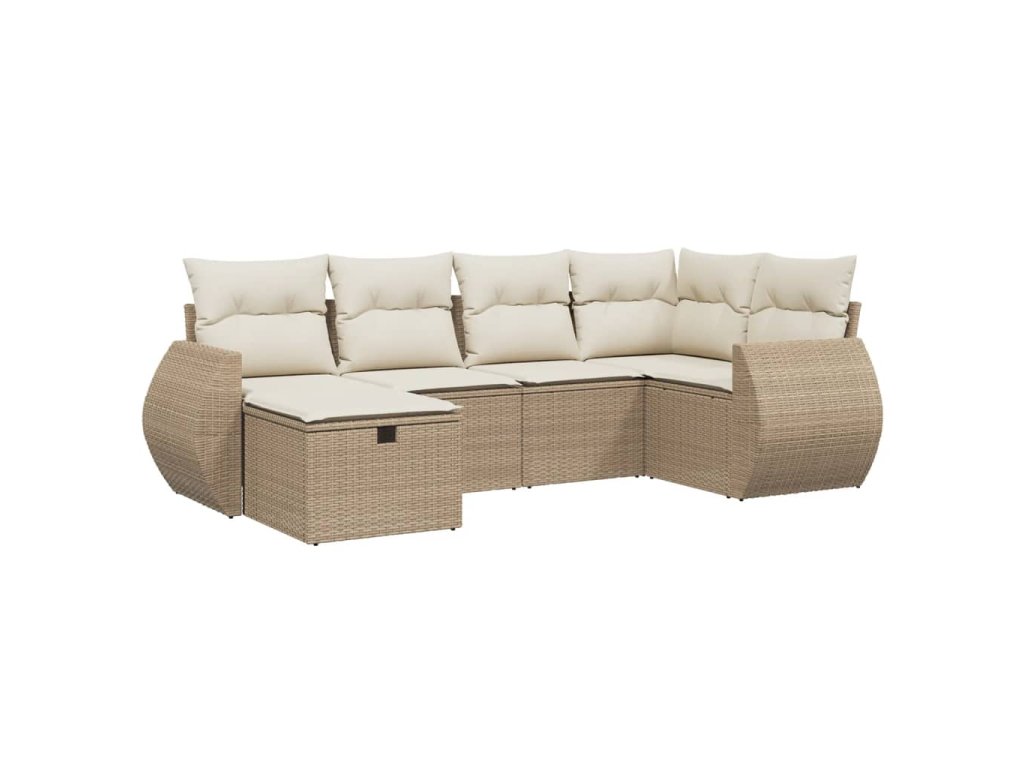 6dílná zahradní sedací souprava s poduškami béžová polyratan 3264104