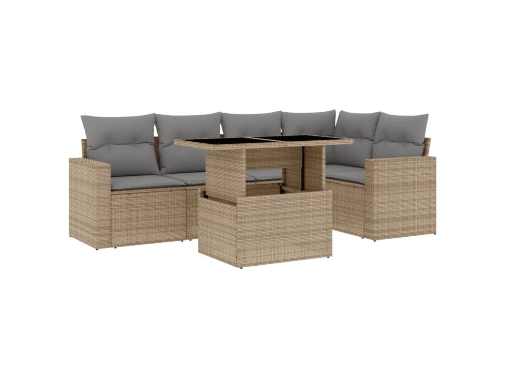 6dílná zahradní sedací souprava s poduškami béžová polyratan 3267259