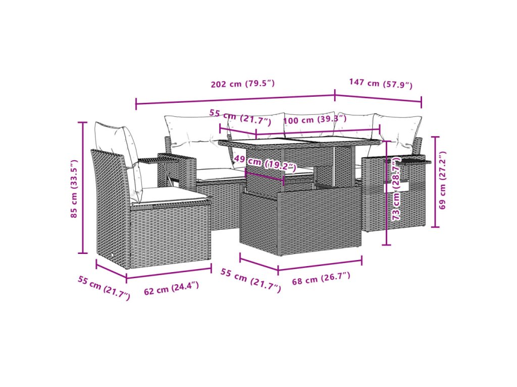 Tato zahradní sedací souprava je dokonalým doplňkem vaší zahrady, terasy nebo dvorku a poskytne vám pohodlné a příjemné místo, kde si můžete povídat s rodinou a přáteli nebo jen tak odpočívat a užívat si pobyt venku.