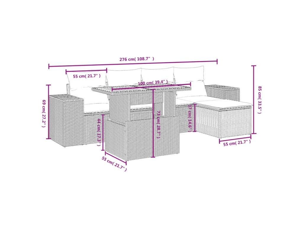 Tato zahradní sedací souprava je dokonalým doplňkem vaší zahrady, terasy nebo dvorku a poskytne vám pohodlné a příjemné místo, kde si můžete povídat s rodinou a přáteli nebo jen tak odpočívat a užívat si pobyt venku.