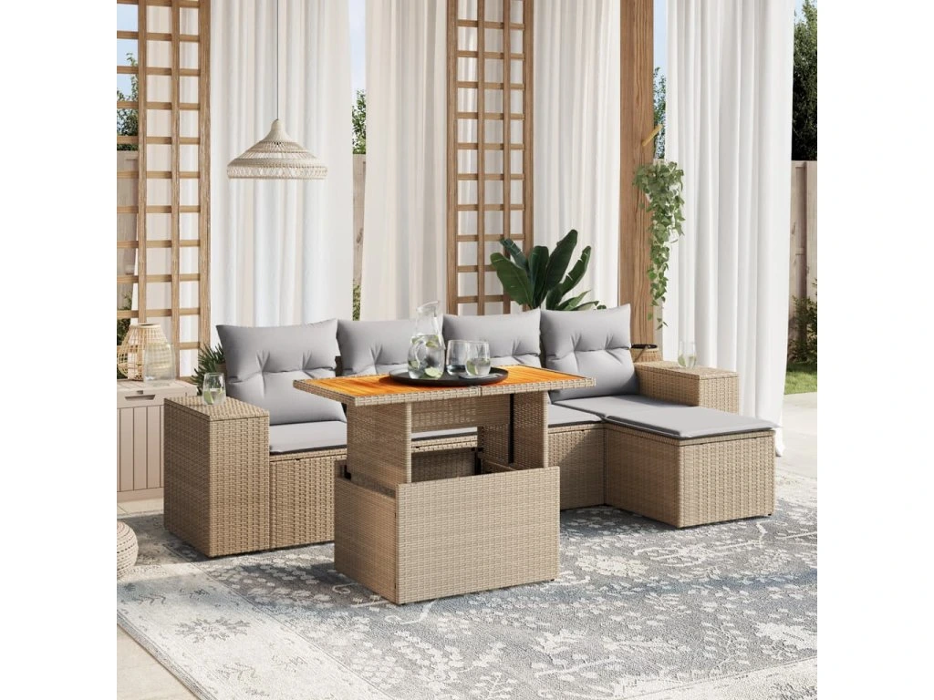 6dílná zahradní sedací souprava s poduškami béžová polyratan 3272613