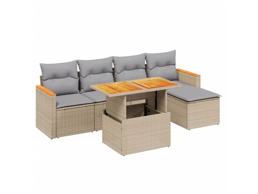 6dílná zahradní sedací souprava s poduškami béžová polyratan 3273054