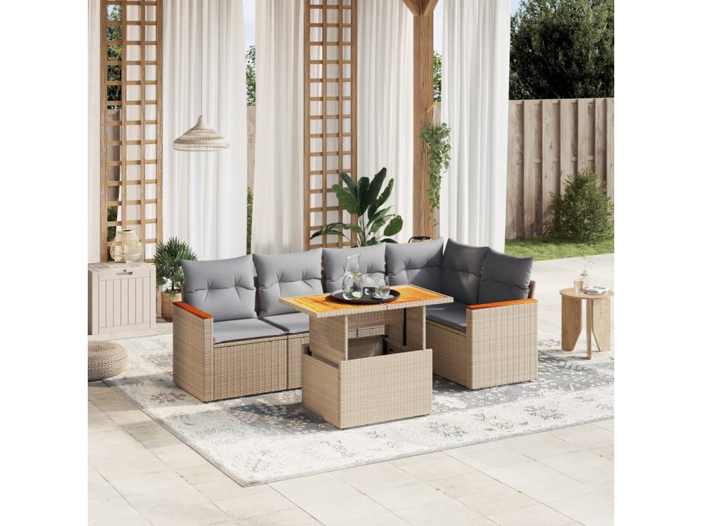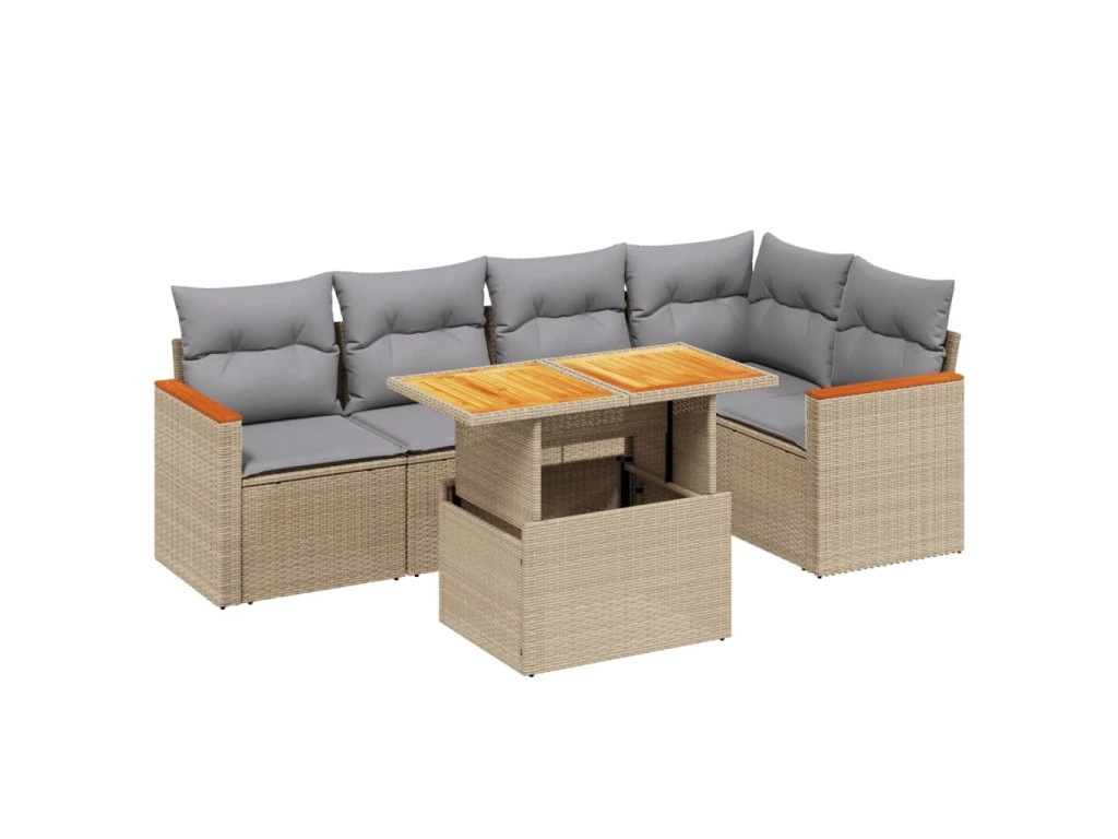 6dílná zahradní sedací souprava s poduškami béžová polyratan 3273068