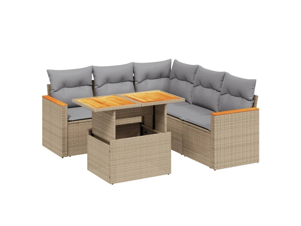 6dílná zahradní sedací souprava s poduškami béžová polyratan 3273075