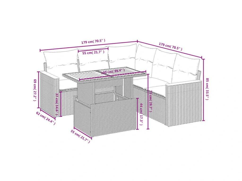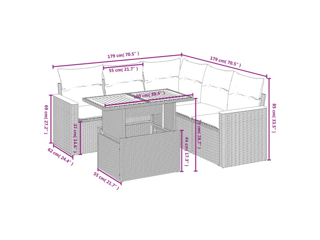 Tato zahradní sedací souprava je dokonalým doplňkem vaší zahrady, terasy nebo dvorku a poskytne vám pohodlné a příjemné místo, kde si můžete povídat s rodinou a přáteli nebo jen tak odpočívat a užívat si pobyt venku.