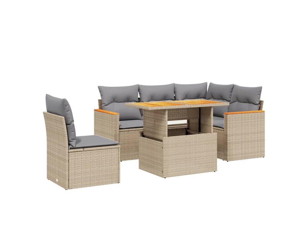 6dílná zahradní sedací souprava s poduškami béžová polyratan 3273082
