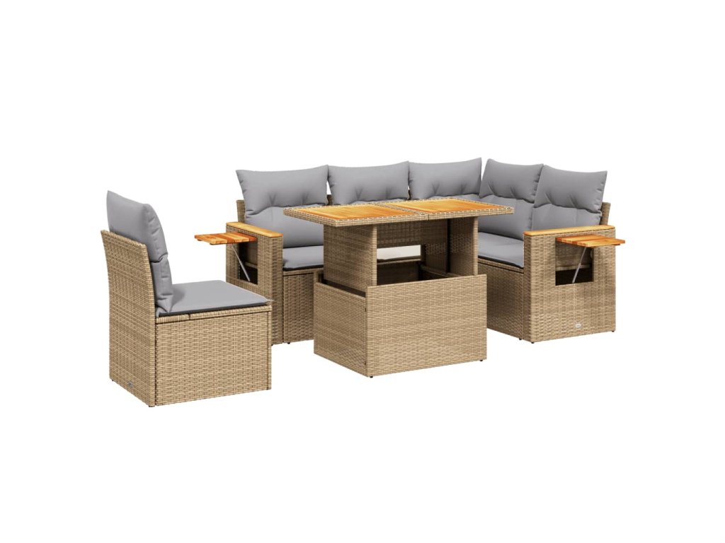 6dílná zahradní sedací souprava s poduškami béžová polyratan 3273523
