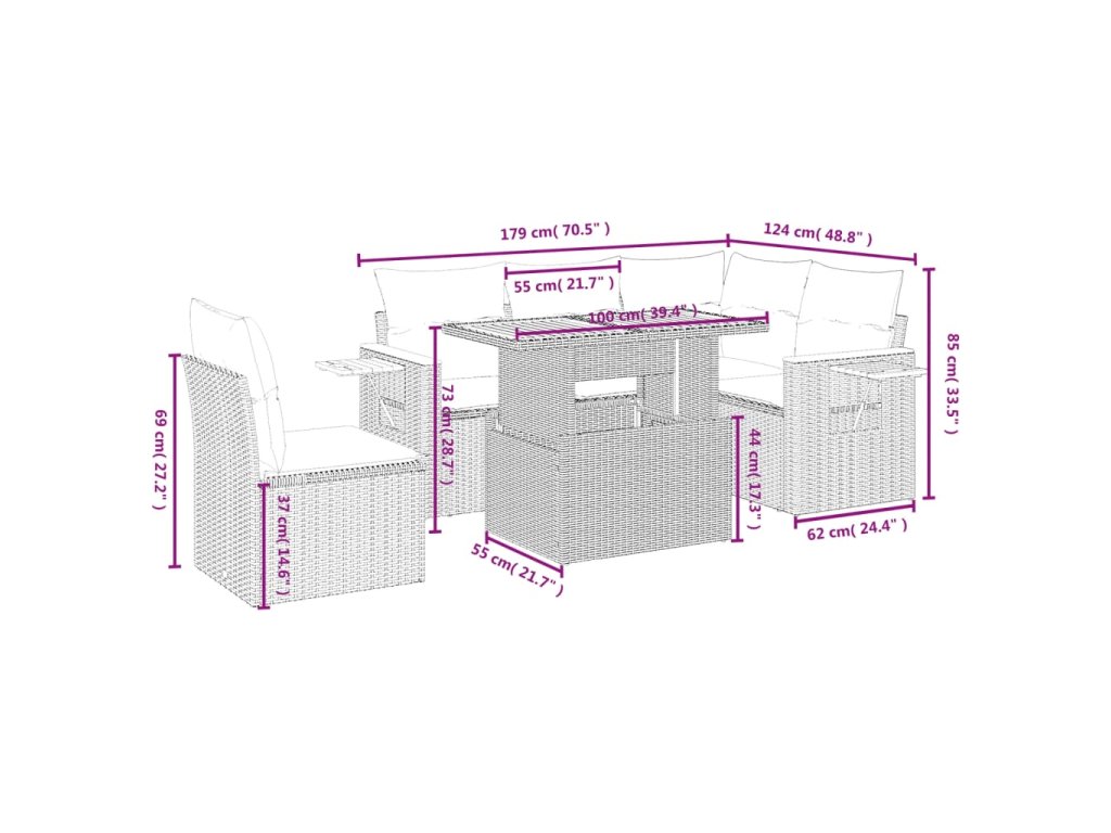 Tato zahradní sedací souprava je dokonalým doplňkem vaší zahrady, terasy nebo dvorku a poskytne vám pohodlné a příjemné místo, kde si můžete povídat s rodinou a přáteli nebo jen tak odpočívat a užívat si pobyt venku.