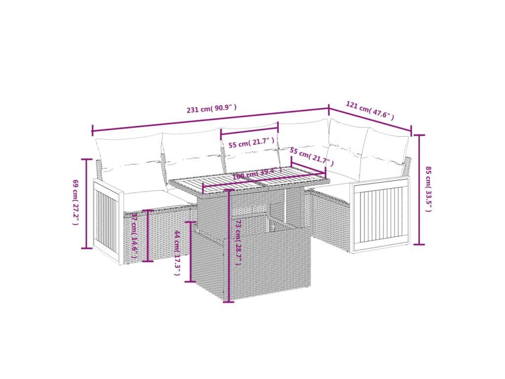 Tato zahradní sedací souprava je dokonalým doplňkem vaší zahrady, terasy nebo dvorku a poskytne vám pohodlné a příjemné místo, kde si můžete povídat s rodinou a přáteli nebo jen tak odpočívat a užívat si pobyt venku.