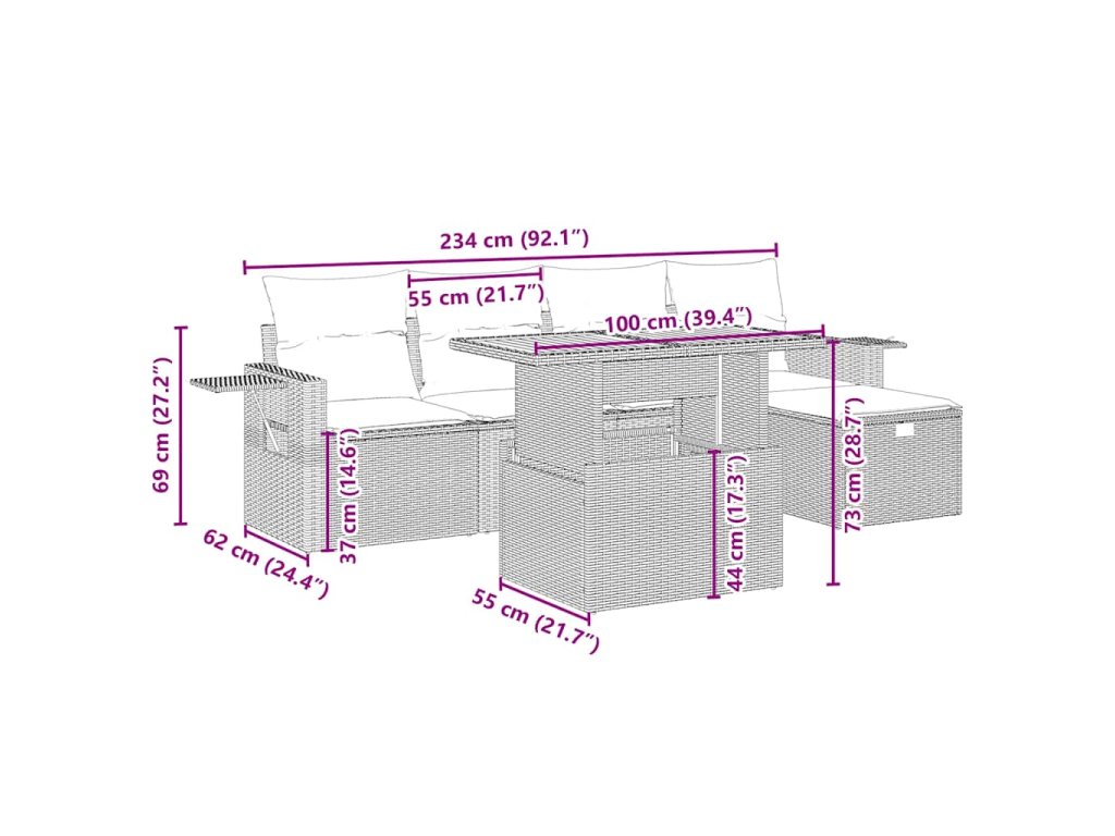 Tato zahradní sedací souprava je dokonalým doplňkem vaší zahrady, terasy nebo dvorku a poskytne vám pohodlné a příjemné místo, kde si můžete povídat s rodinou a přáteli nebo jen tak odpočívat a užívat si pobyt venku.