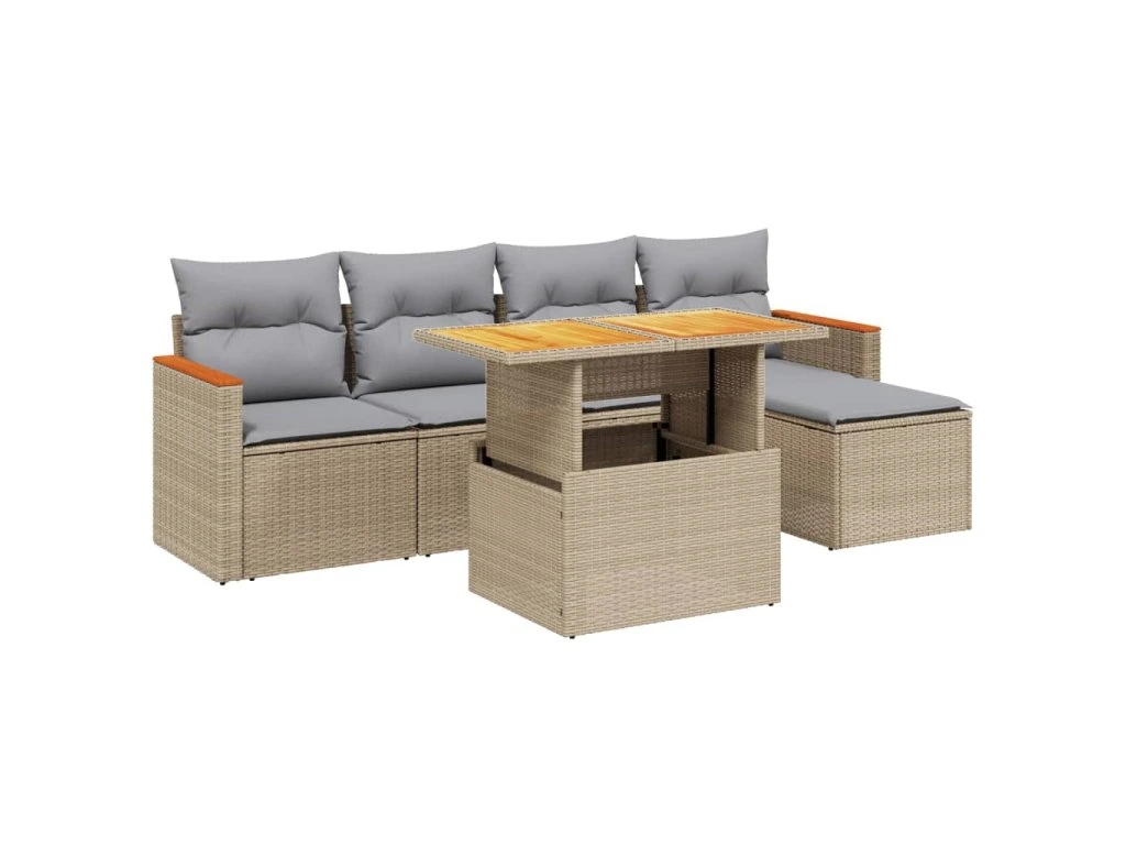 6dílná zahradní sedací souprava s poduškami béžová polyratan 3276034