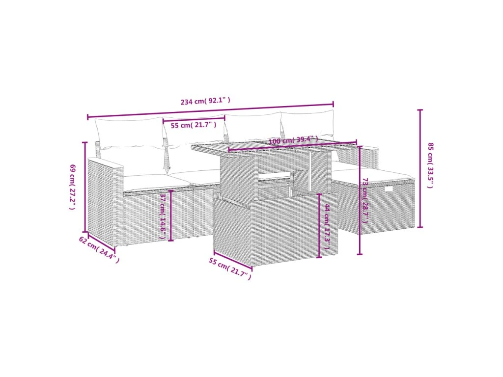 Tato zahradní sedací souprava je dokonalým doplňkem vaší zahrady, terasy nebo dvorku a poskytne vám pohodlné a příjemné místo, kde si můžete povídat s rodinou a přáteli nebo jen tak odpočívat a užívat si pobyt venku.