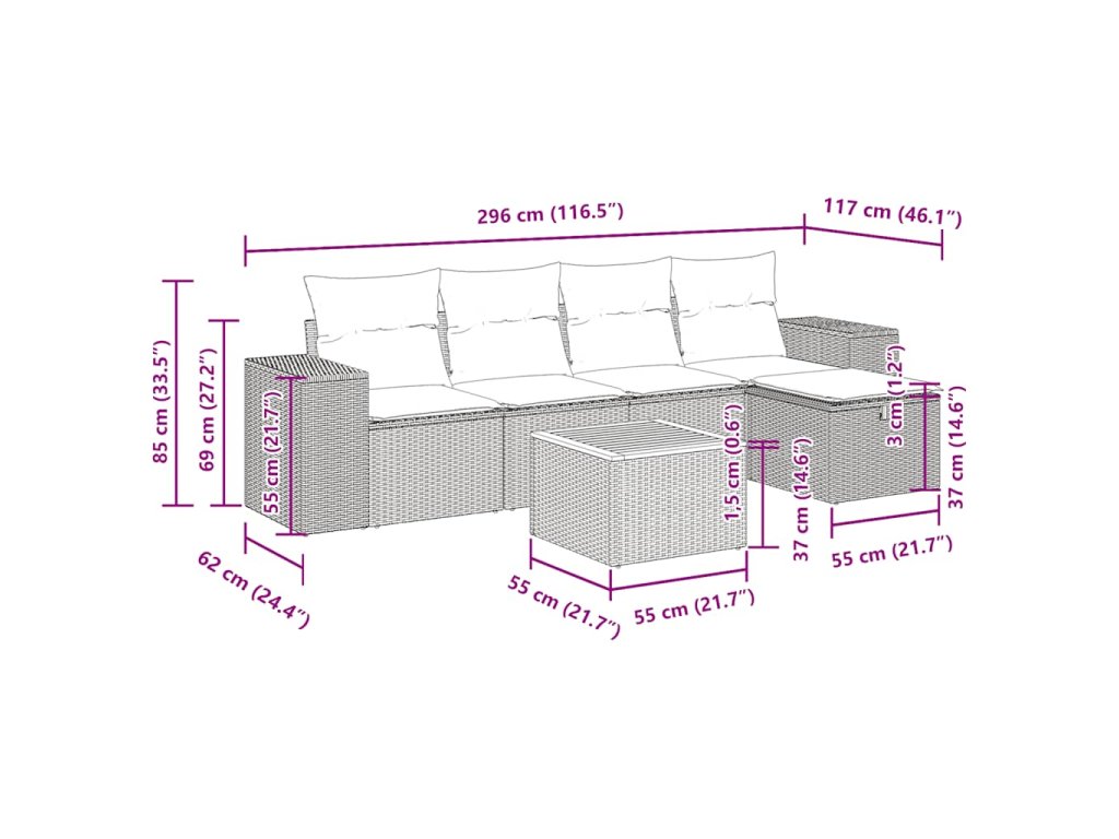 Tato zahradní sedací souprava je dokonalým doplňkem vaší zahrady, terasy nebo dvorku a poskytne vám pohodlné a příjemné místo, kde si můžete povídat s rodinou a přáteli nebo jen tak odpočívat a užívat si pobyt venku.