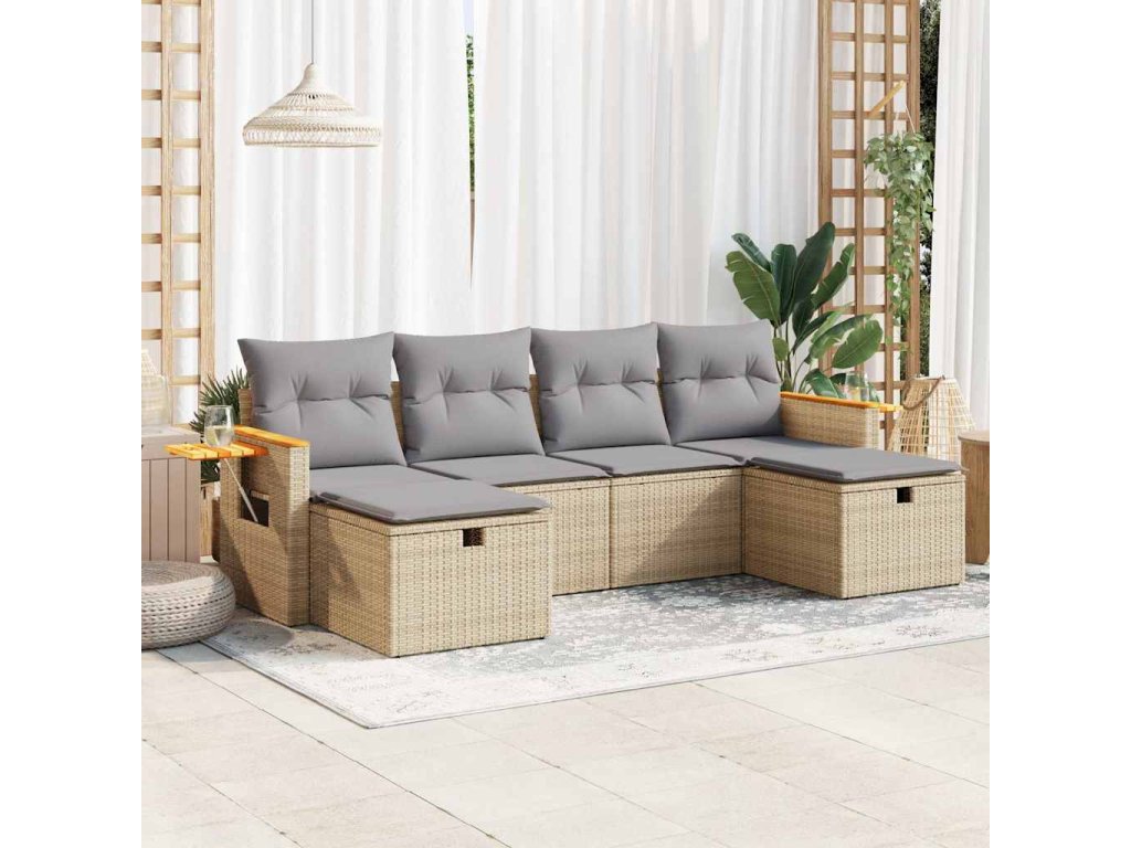 6dílná zahradní sedací souprava s poduškami béžová polyratan 3326000