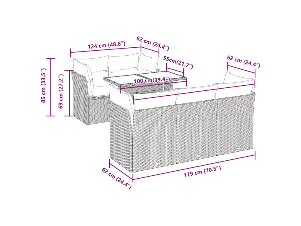 Tato zahradní sedací souprava je dokonalým doplňkem vaší zahrady, terasy nebo dvorku a poskytne vám pohodlné a příjemné místo, kde si můžete povídat s rodinou a přáteli nebo jen tak odpočívat a užívat si pobyt venku.