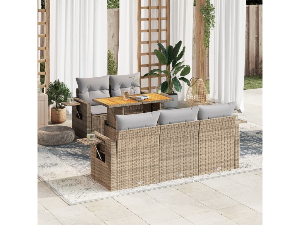 6dílná zahradní sedací souprava s poduškami béžová polyratan 3327104