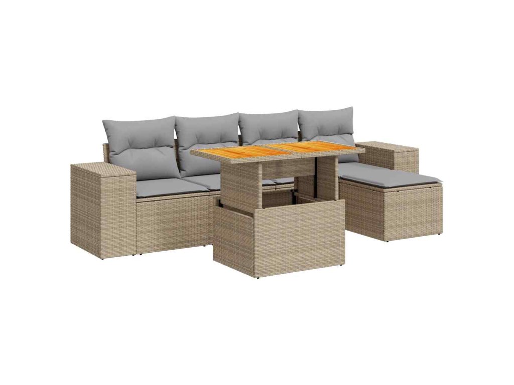 6dílná zahradní sedací souprava s poduškami béžová polyratan 3327363