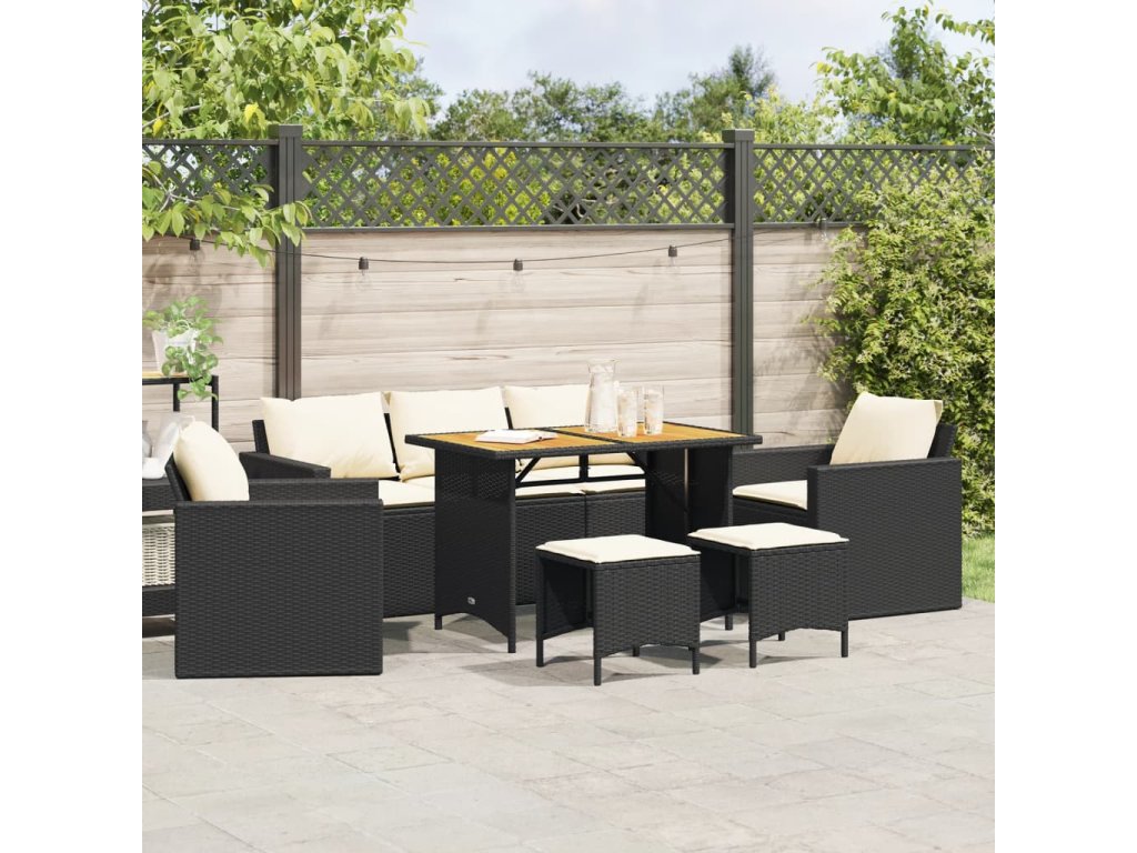 6dílná zahradní sedací souprava s poduškami černá polyratan 3213556
