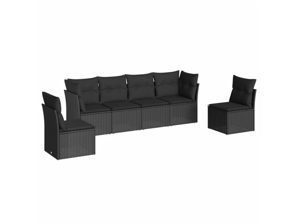 6dílná zahradní sedací souprava s poduškami černá polyratan 3217365
