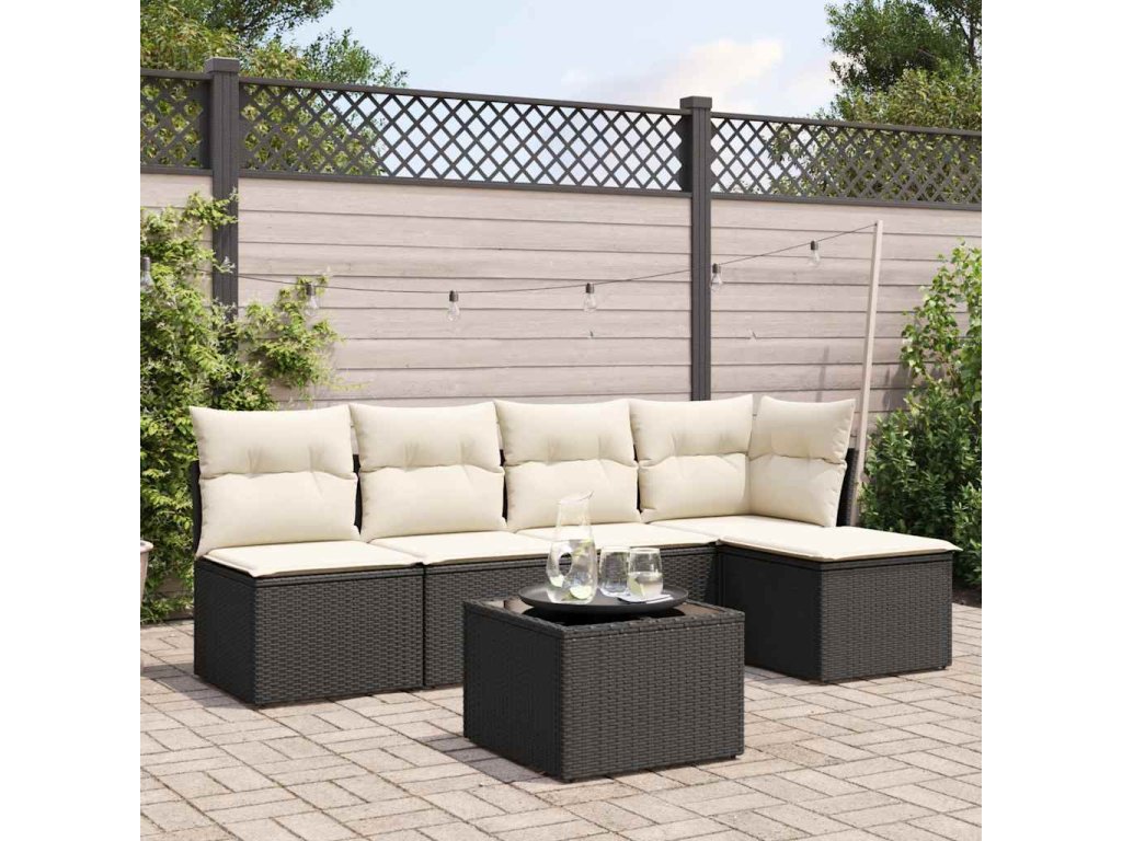6dílná zahradní sedací souprava s poduškami černá polyratan 3217526