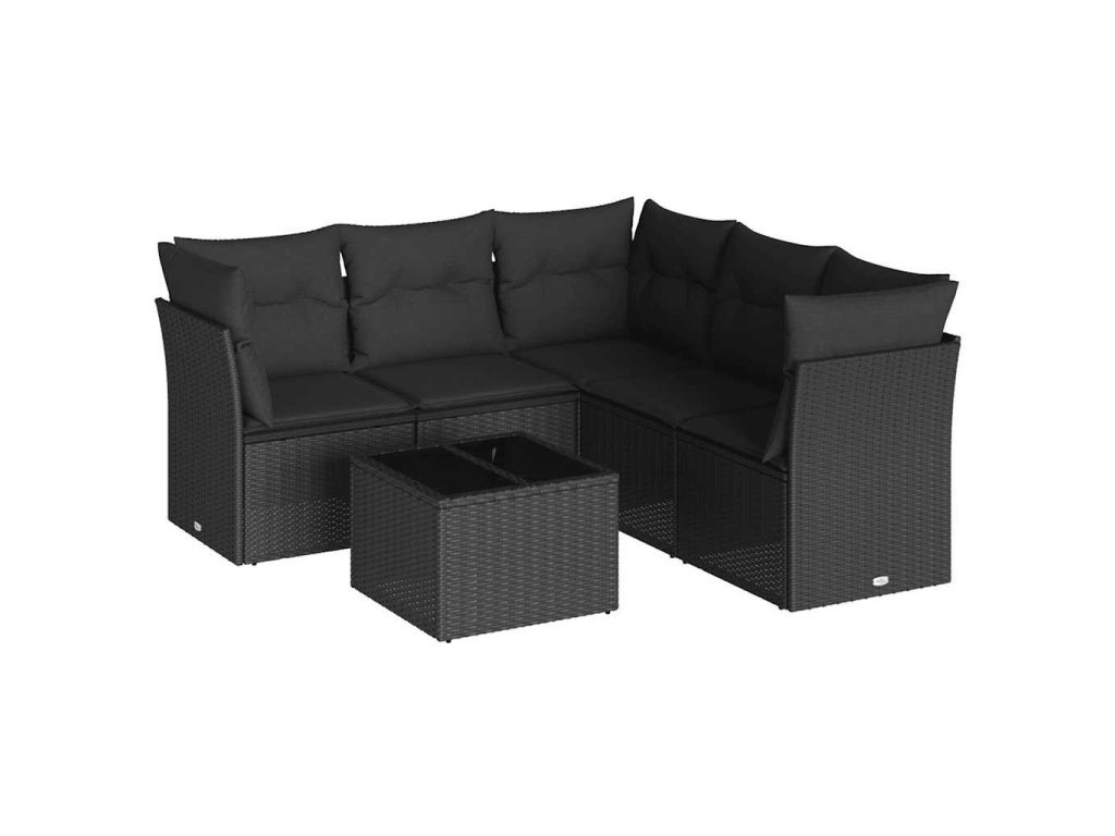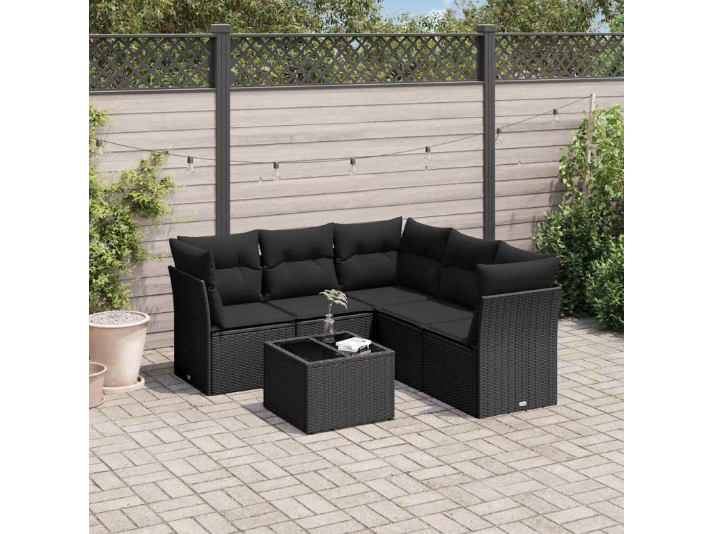 6dílná zahradní sedací souprava s poduškami černá polyratan 3217625
