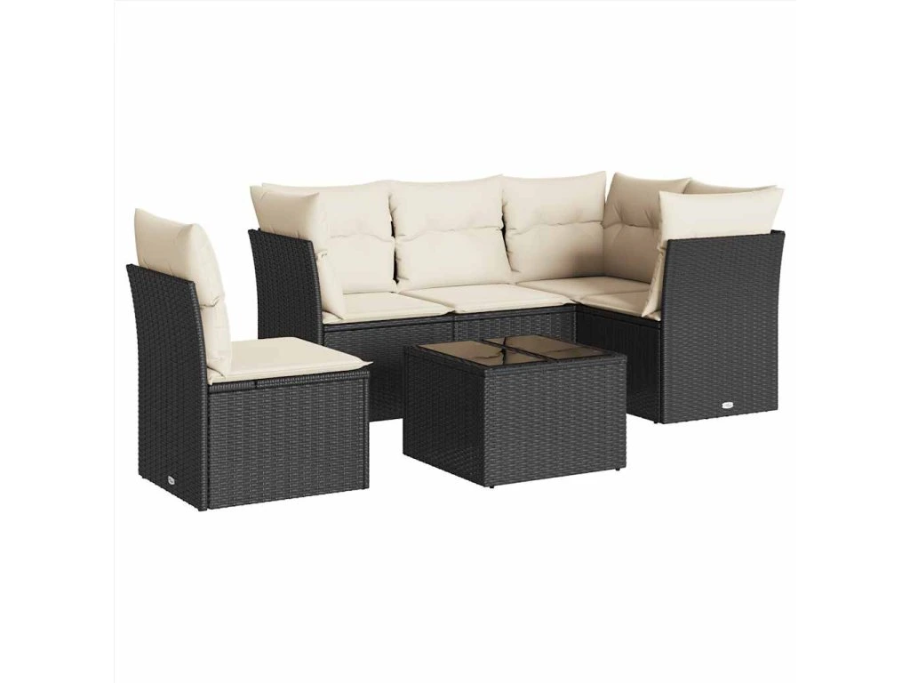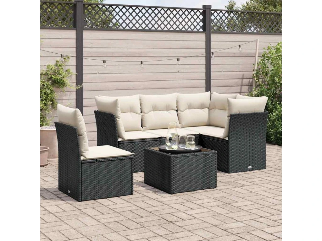 6dílná zahradní sedací souprava s poduškami černá polyratan 3217646