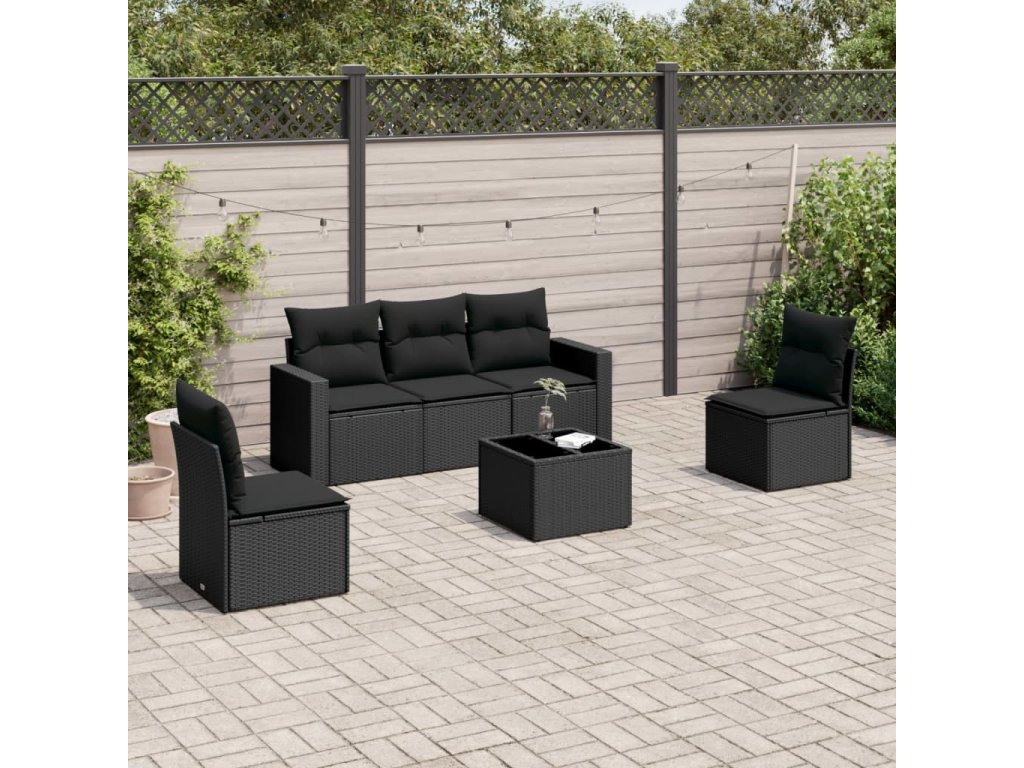 6dílná zahradní sedací souprava s poduškami černá polyratan 3218785