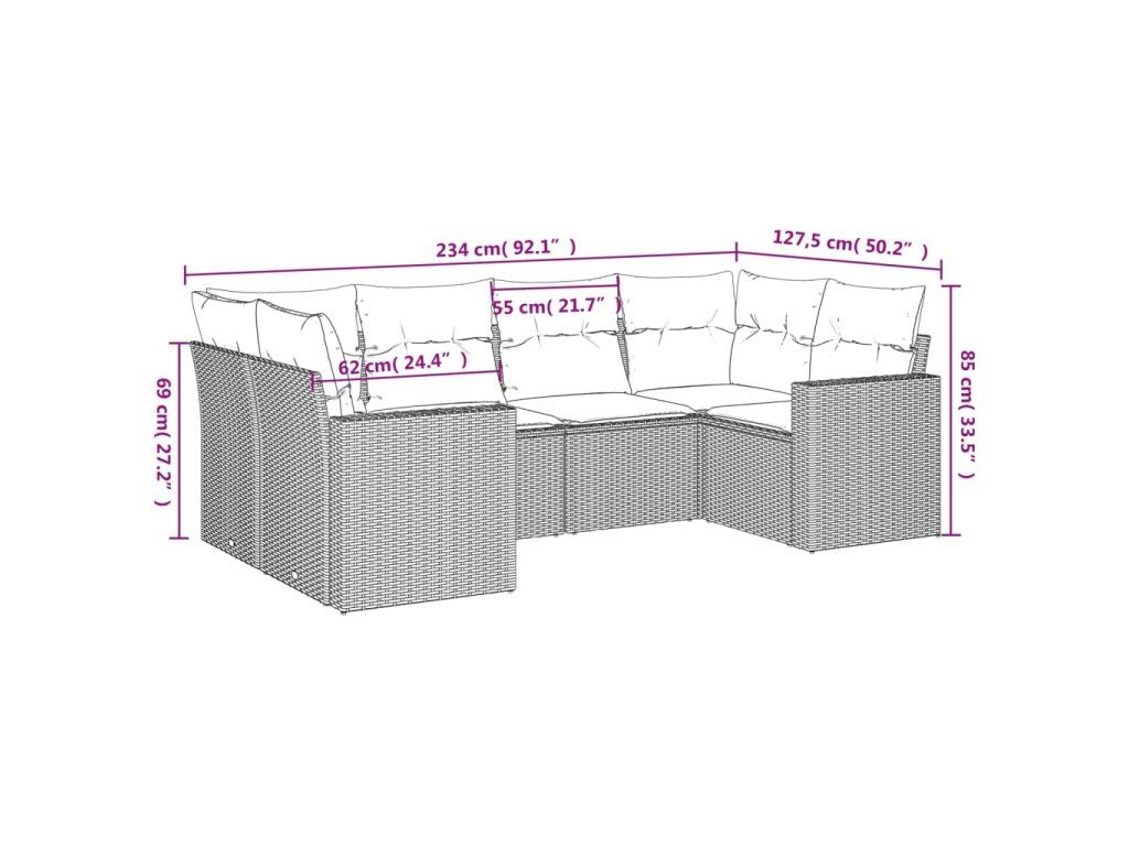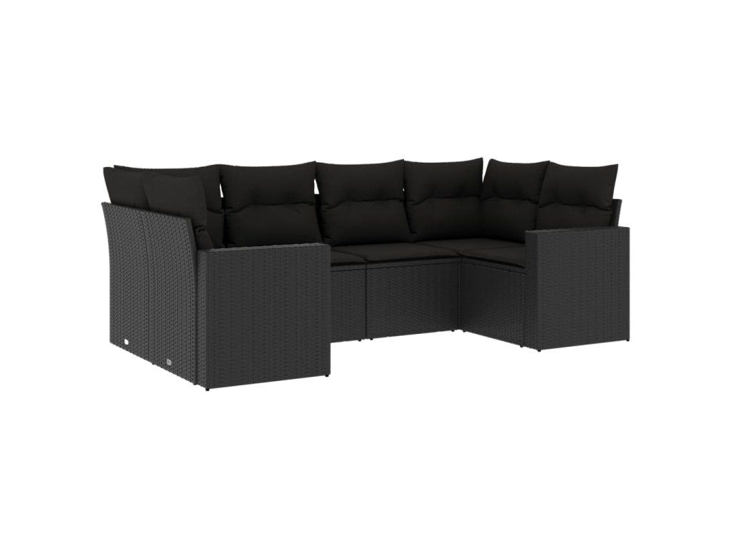 6dílná zahradní sedací souprava s poduškami černá polyratan 3219365
