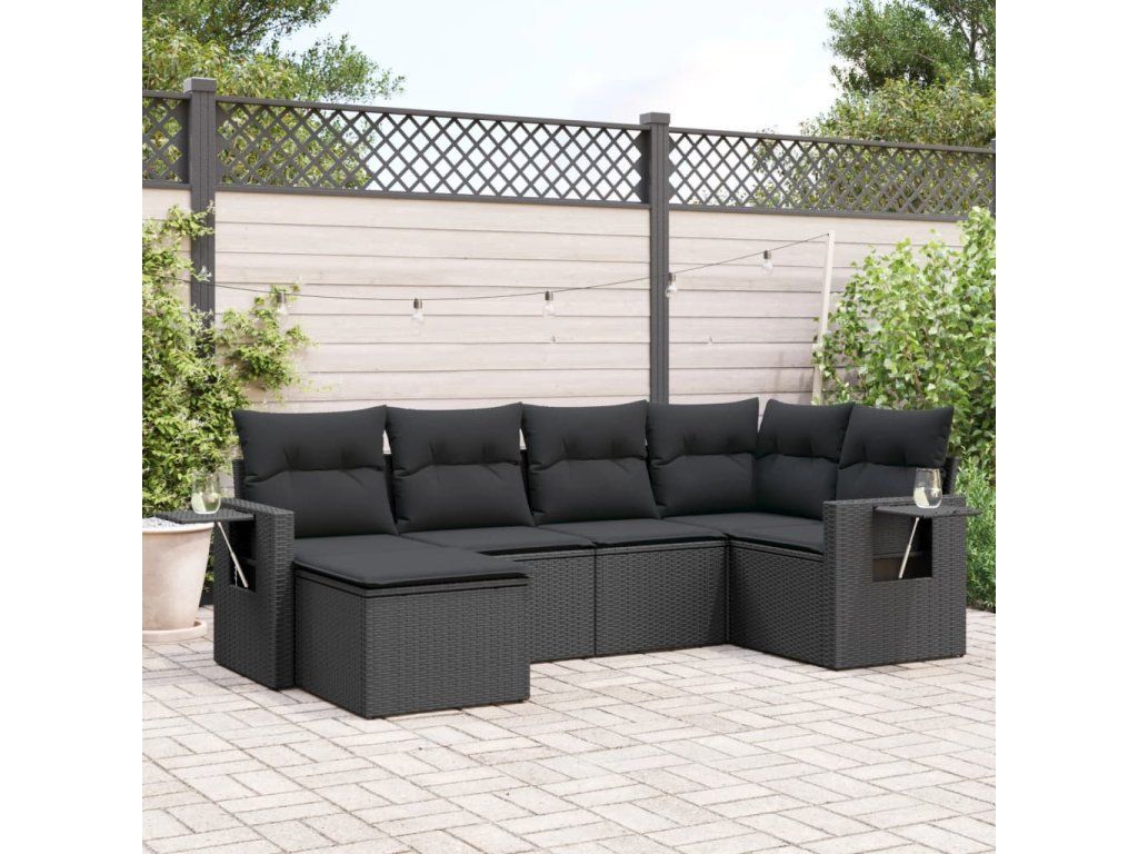 6dílná zahradní sedací souprava s poduškami černá polyratan 3220454