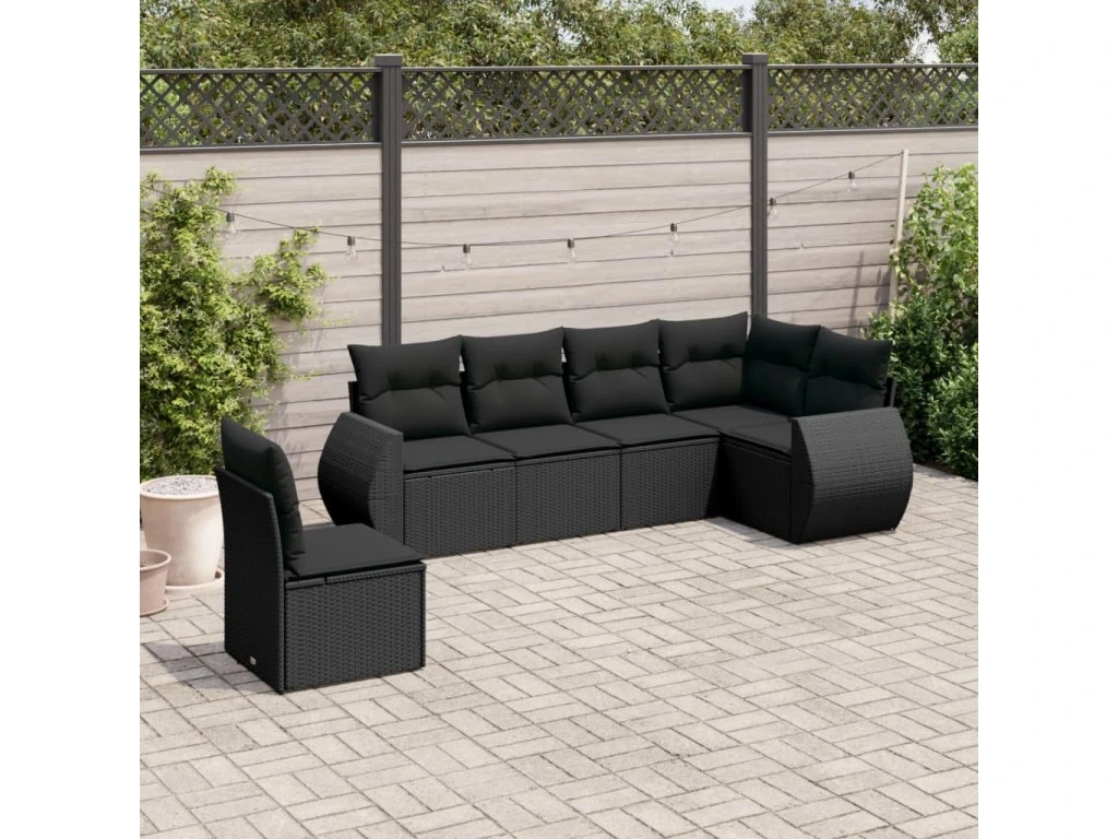 6dílná zahradní sedací souprava s poduškami černá polyratan 3221424