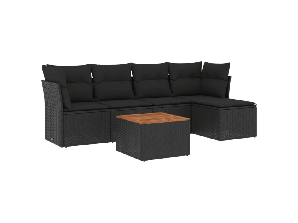 6dílná zahradní sedací souprava s poduškami černá polyratan 3223612