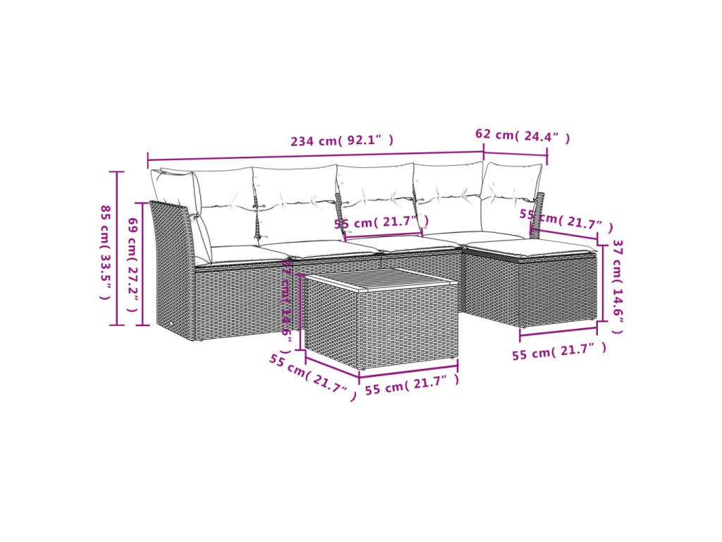Tato zahradní sedací souprava je dokonalým doplňkem vaší zahrady, terasy nebo dvorku a poskytne vám pohodlné a příjemné místo, kde si můžete povídat s rodinou a přáteli nebo jen tak odpočívat a užívat si pobyt venku.