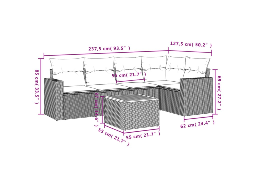 Tato zahradní sedací souprava je dokonalým doplňkem vaší zahrady, terasy nebo dvorku a poskytne vám pohodlné a příjemné místo, kde si můžete povídat s rodinou a přáteli nebo jen tak odpočívat a užívat si pobyt venku.