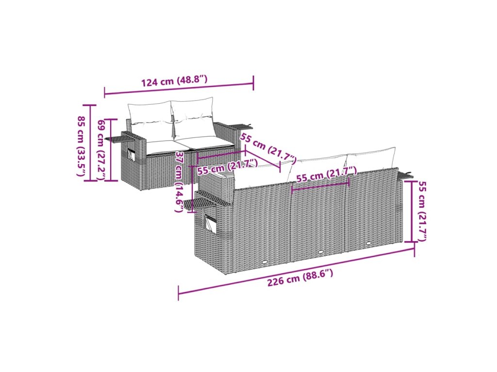 Tato zahradní sedací souprava je dokonalým doplňkem vaší zahrady, terasy nebo dvorku a poskytne vám pohodlné a příjemné místo, kde si můžete povídat s rodinou a přáteli nebo jen tak odpočívat a užívat si pobyt venku.
