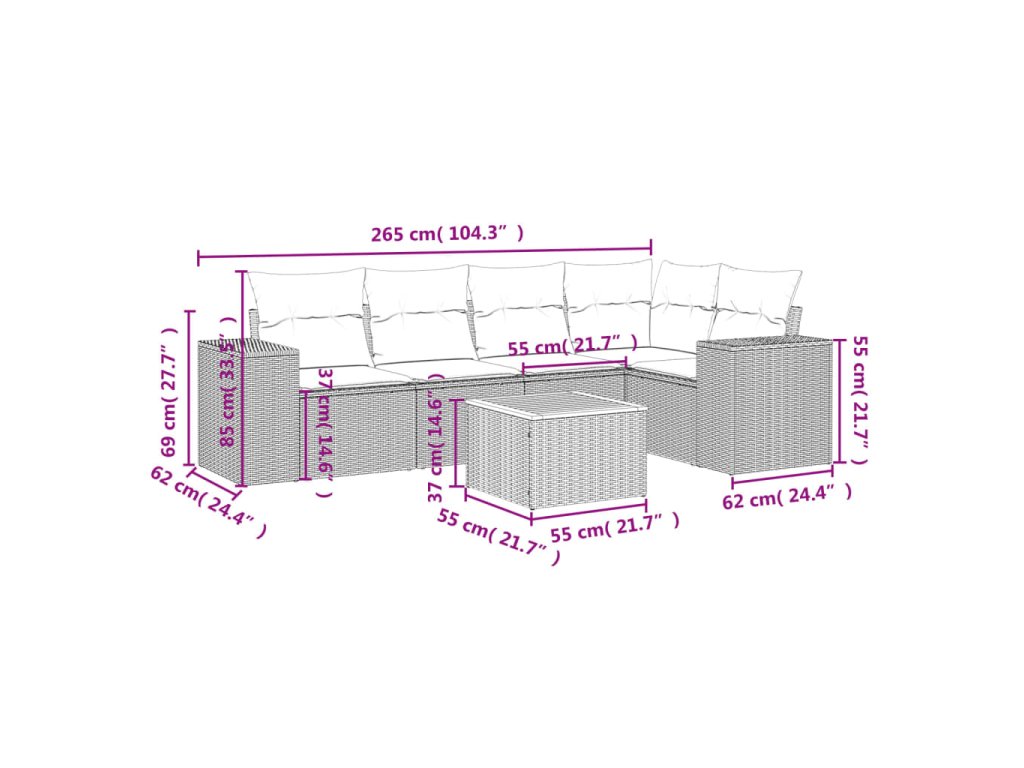 Tato zahradní sedací souprava je dokonalým doplňkem vaší zahrady, terasy nebo dvorku a poskytne vám pohodlné a příjemné místo, kde si můžete povídat s rodinou a přáteli nebo jen tak odpočívat a užívat si pobyt venku.