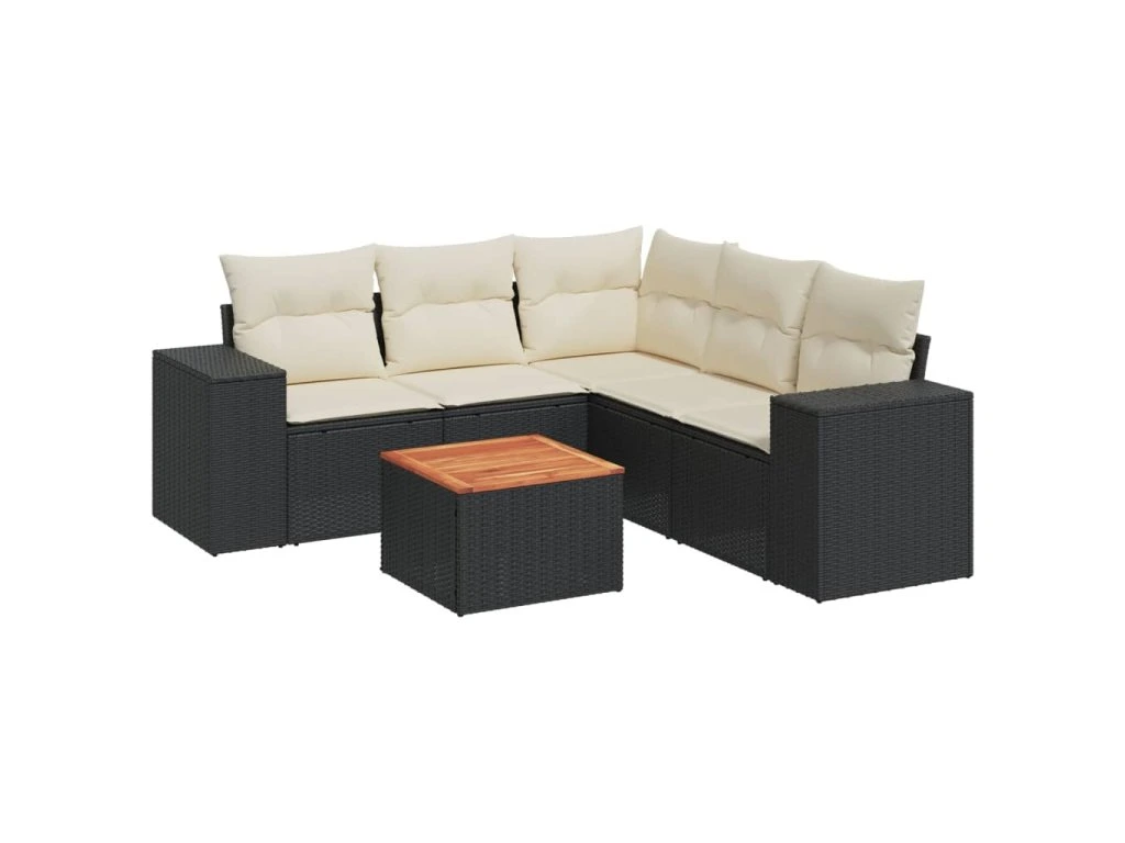 6dílná zahradní sedací souprava s poduškami černá polyratan 3225440