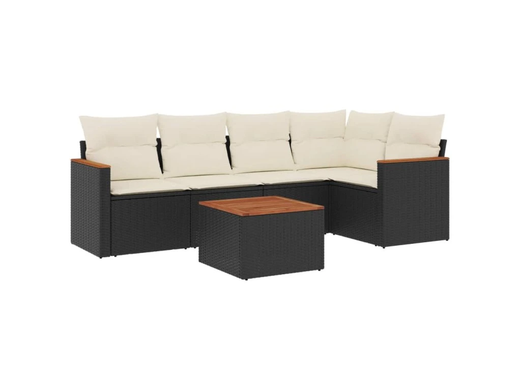 6dílná zahradní sedací souprava s poduškami černá polyratan 3225951