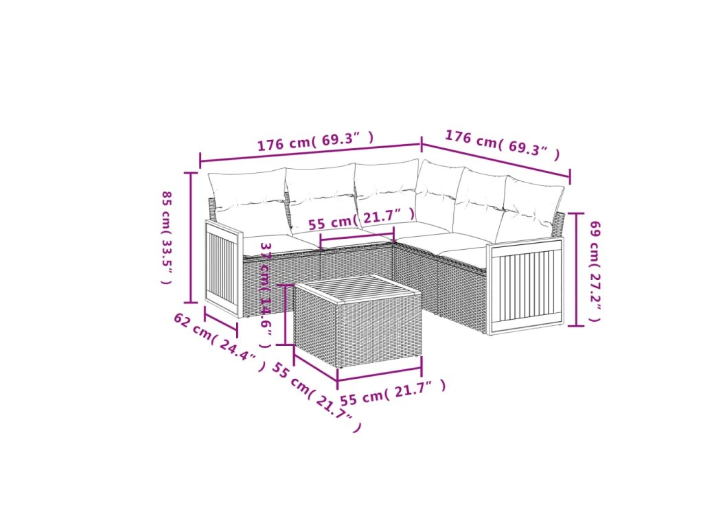 Tato zahradní sedací souprava je dokonalým doplňkem vaší zahrady, terasy nebo dvorku a poskytne vám pohodlné a příjemné místo, kde si můžete povídat s rodinou a přáteli nebo jen tak odpočívat a užívat si pobyt venku.
