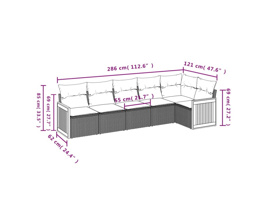 6dílná zahradní sedací souprava s poduškami černá polyratan 3227665