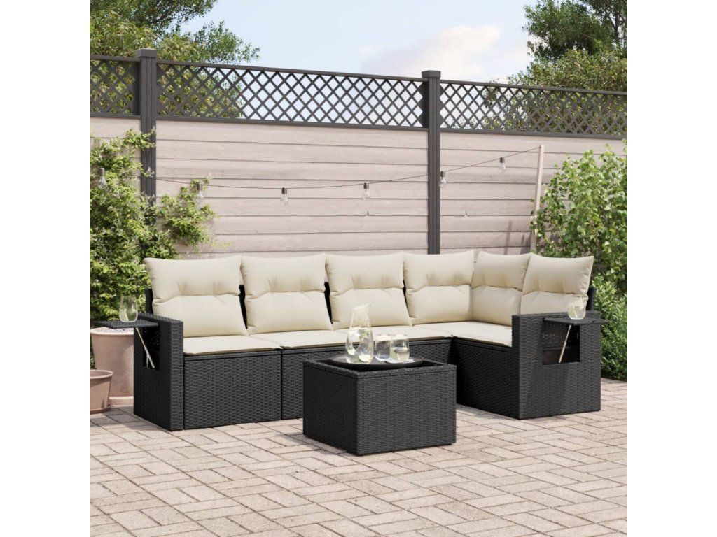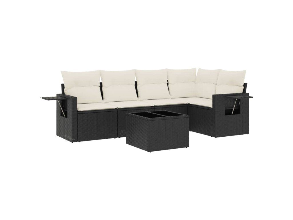 6dílná zahradní sedací souprava s poduškami černá polyratan 3252473