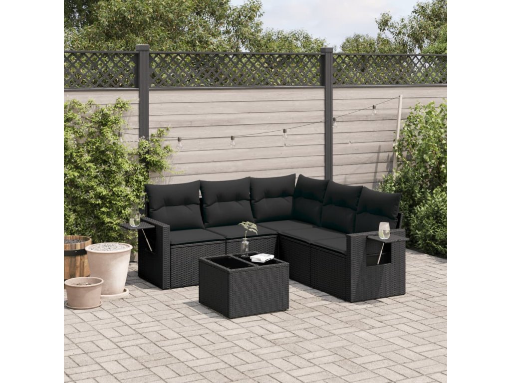 6dílná zahradní sedací souprava s poduškami černá polyratan 3252492