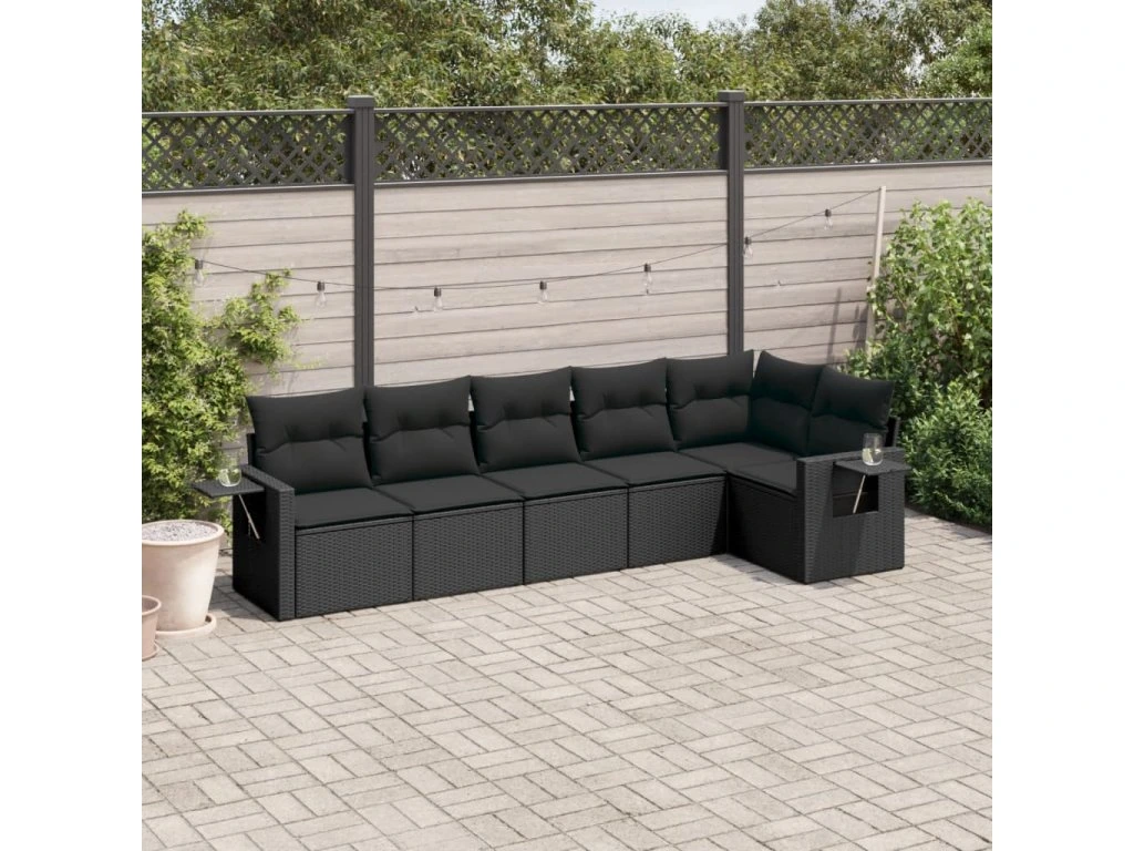 6dílná zahradní sedací souprava s poduškami černá polyratan 3252522